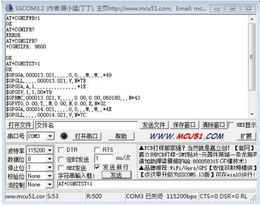 3. Check the baud rate: AT+CGNSIPR?
